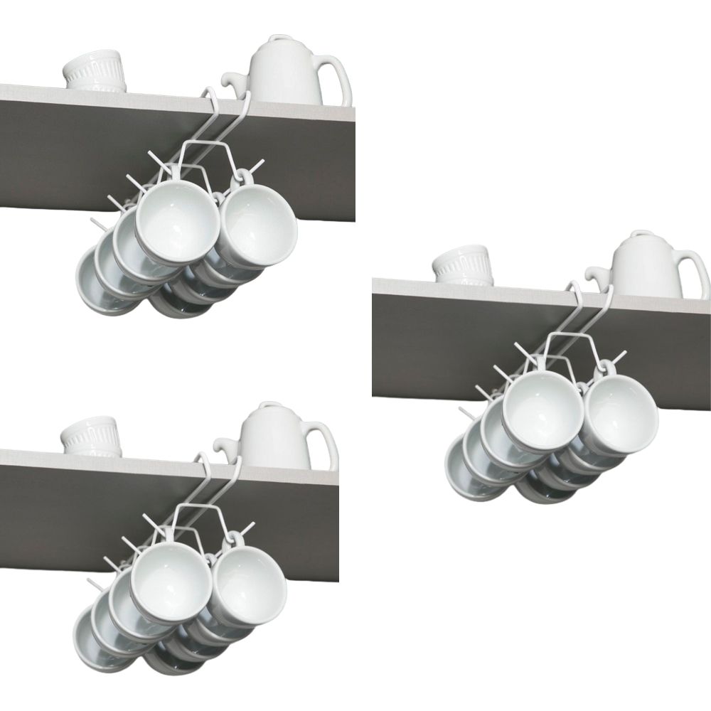 Suporte para xícaras fabricado em aço com pintura eletrostática branca, garantindo maior resistência, durabilidade e acabamento uniforme.